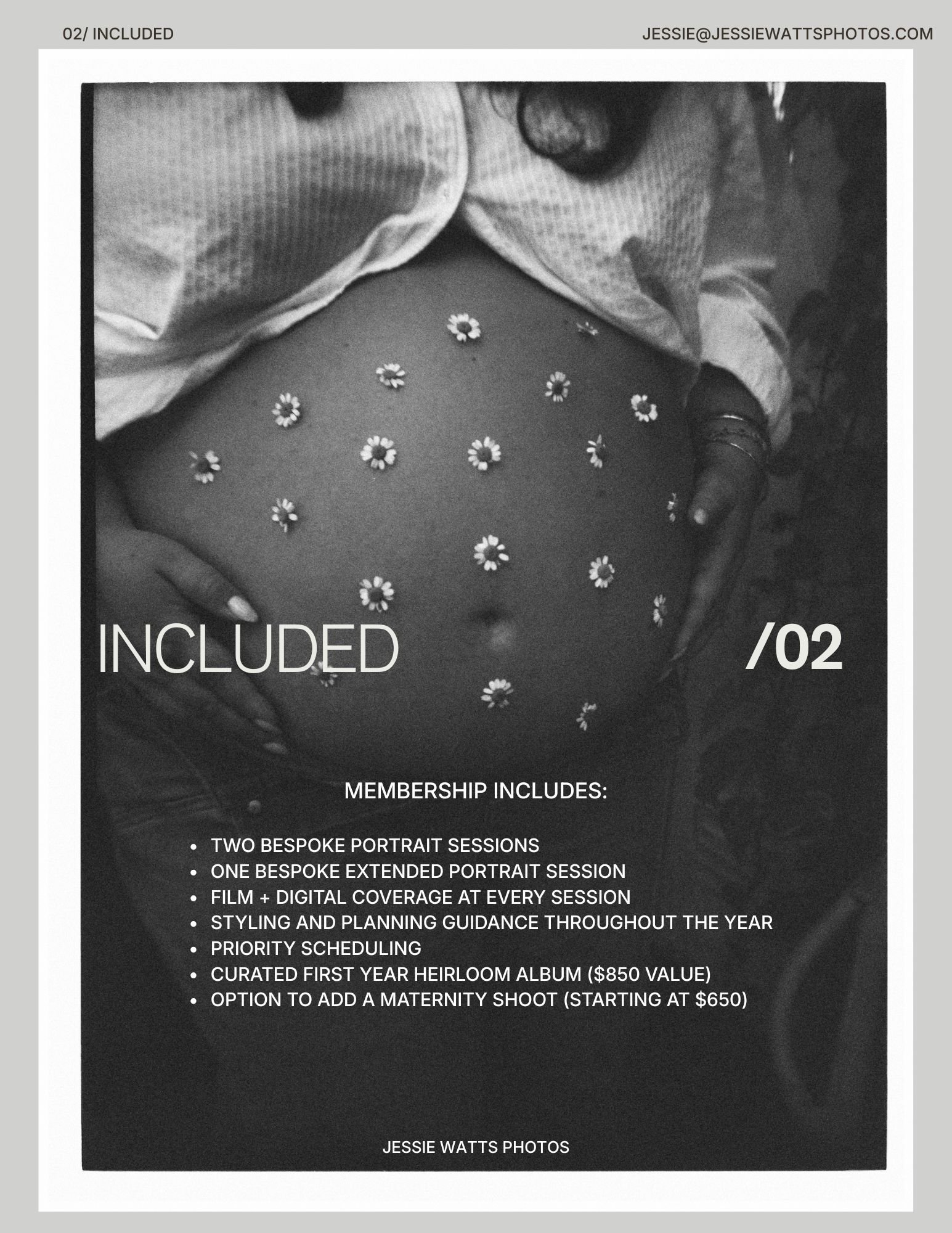 The Family Membership is designed for parents standing at the threshold of a new chapter — a year-long documentation of the quiet transformation that unfolds during a child’s first year. Through three sessions — marking the newborn, six months, and one year milestones — we create an evolving visual narrative that reflects the rhythm, intimacy, and emotion of early parenthood. Each session is photographed on both film and digital, blending timeless texture with an honest, editorial approach to storytelling.