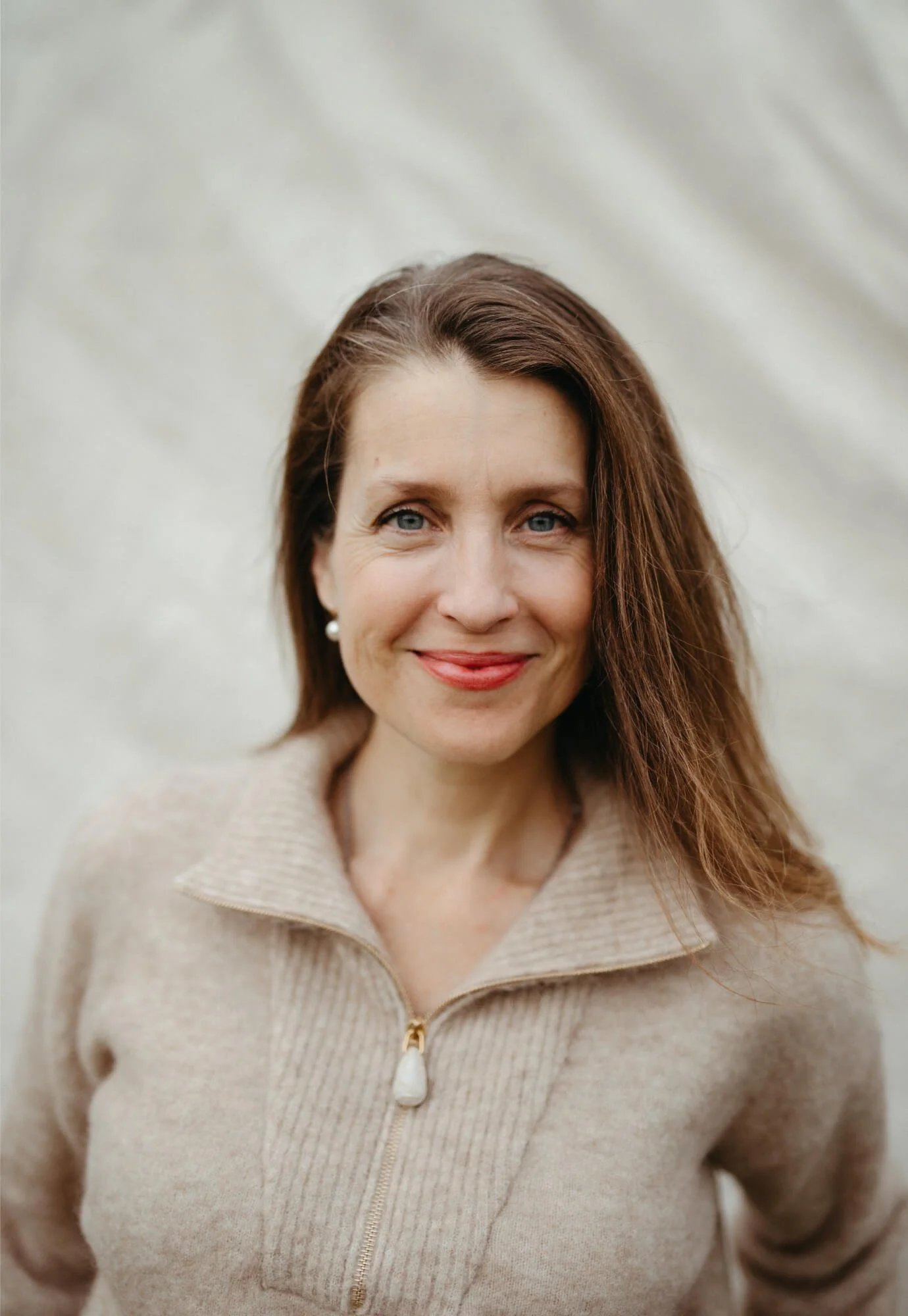 Portrait of woman in beige sweather