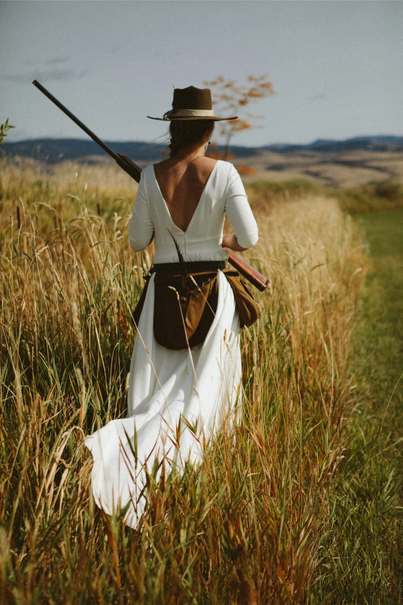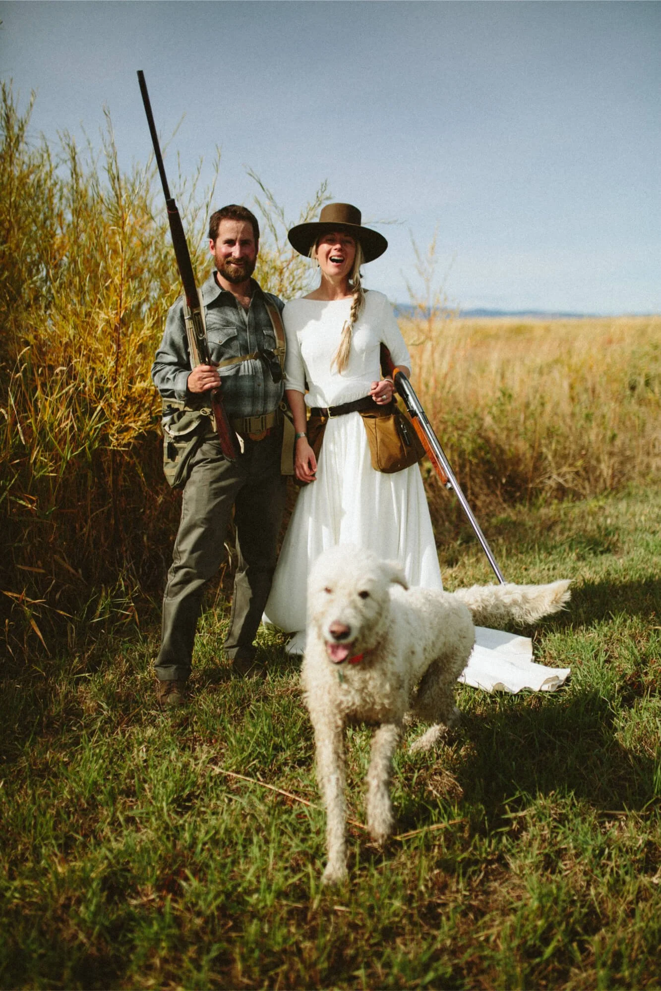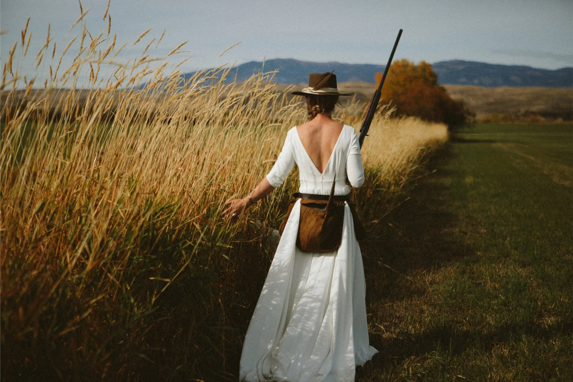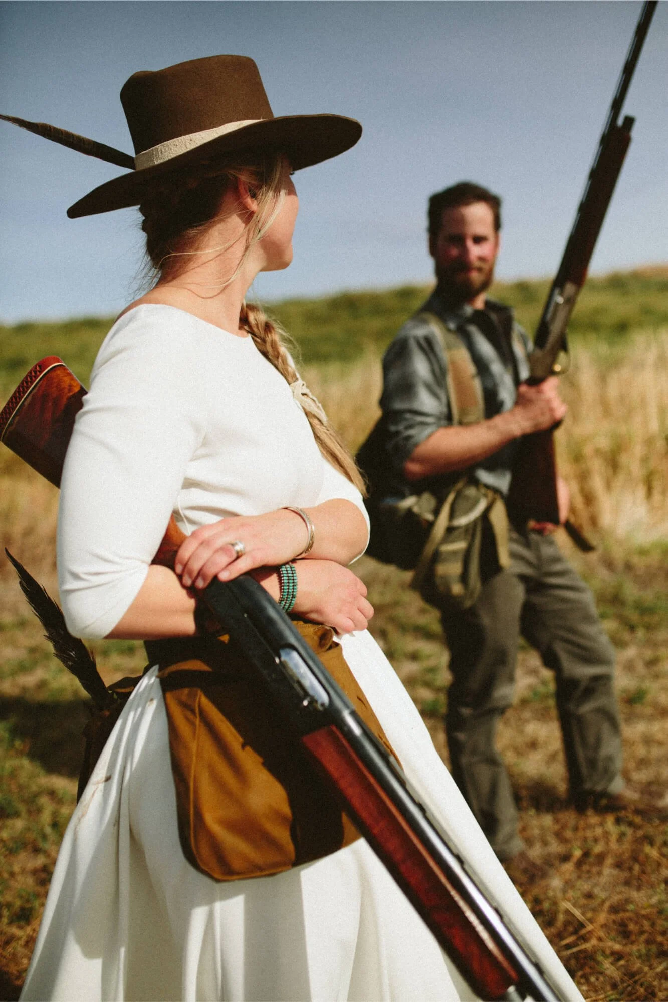 Ricky and Alex’s wedding was a wild-hearted celebration held on her grandfather’s land in Council, Idaho, timed perfectly with the opening day of quail season. That morning, friends and family joined for a sunrise ceremony, followed by a hunt through the golden fields—only to have the bride, still in her wedding dress, take the sole bird of the day.